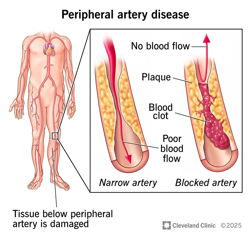 Peripheral Artery Disease (PAD) is a condition where the arteries that carry blood to your legs and feet become narrowed or blocked. This reduces the flow of oxygen-rich blood, causing symptoms like leg pain, cramping, fatigue, and in severe cases, wounds that won’t heal. While PAD is common, especially in people over 50, it’s often overlooked because the early signs are mistaken for aging or muscle fatigue. But with timely diagnosis and treatment, PAD can be managed effectively and complications can be avoided.
